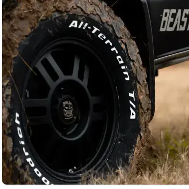 Storyteller Overland BEAST Satin Black Wheel already mounted and balanced with a BFGoodrich All Terrain 275/70R17 T/A KO2 tire and stock Mercedes Tire Pressure Sensor.