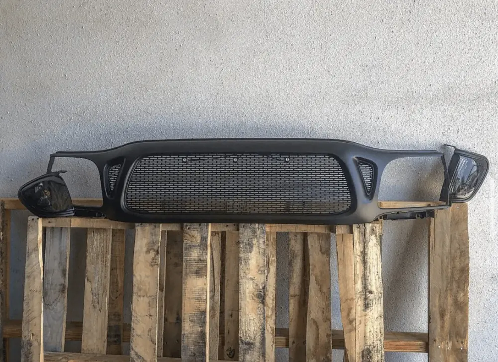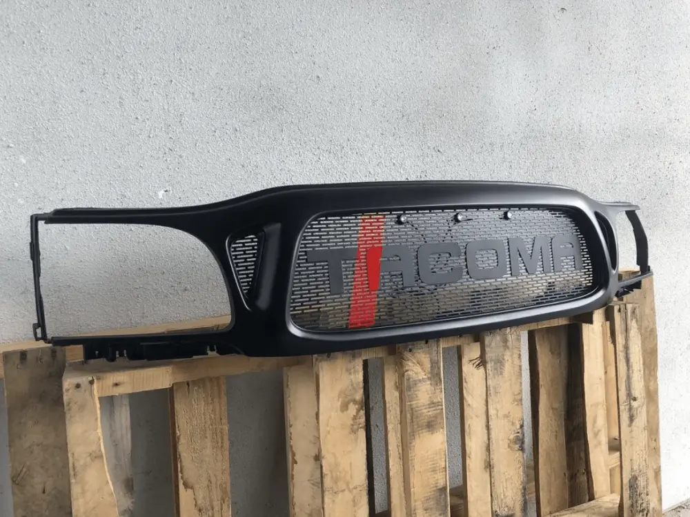 A handbuilt custom flush mesh grille for 01-04 1st Gen Toyota Tacomas. With emblem, lighting, and surround color options, you can make your grille stand out from the others!