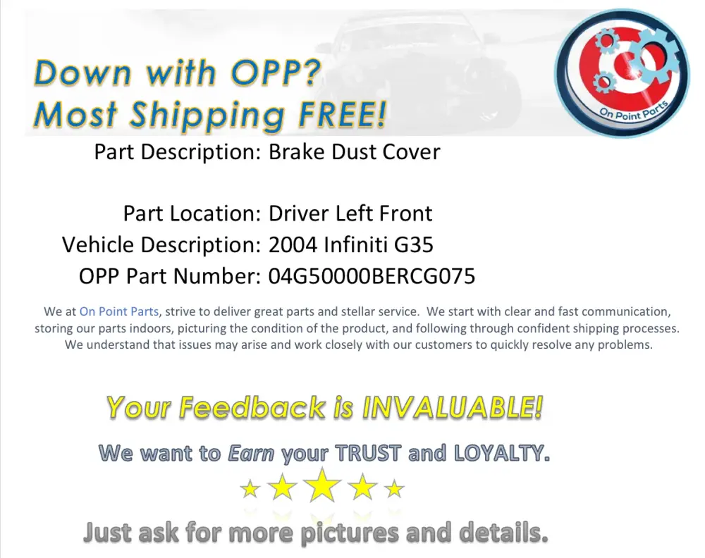 Infiniti G35 Driver Left Front Brake Dust Cover OEM 14BERCG