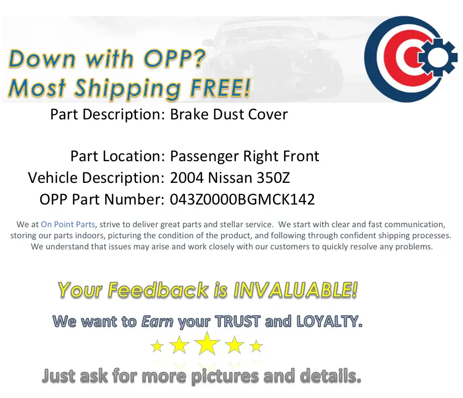 Nissan 350Z Passenger Right Front Brake Dust Cover OEM 11BGMCK ● 90-day money-back guarantee ● 3-Year Limited Warranty ▶ Weekend Deal – Save Now