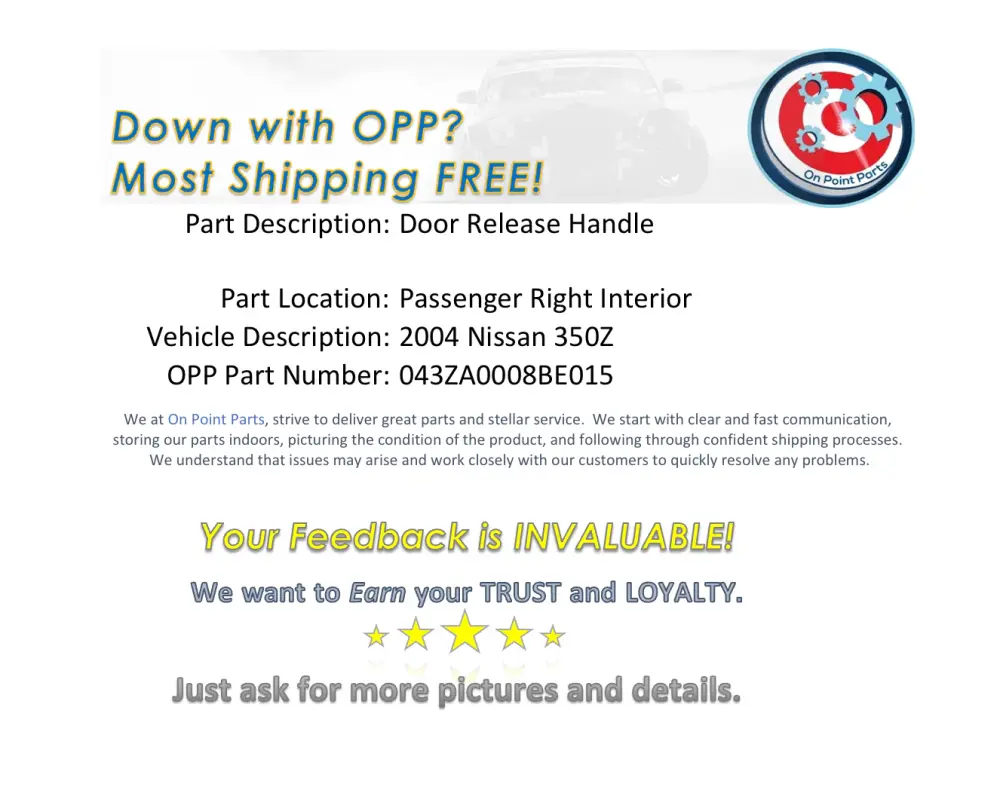Nissan 350Z Passenger Right Interior Door Handle Release OEM 18BE