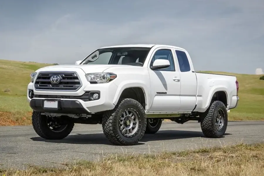 ReadyLIFT offers a pre-load lift style SST Lift Kit for the 2005-2023 Toyota Tacoma 2WD/4WD 6-lug trucks. Our heritage top attach strut extension 3″ SST lift kits have been extremely popular for the past decade, but some customers favor a pre-load style lift kit, so we have added this lift technology to our product portfolio. Now you have more ReadyLIFT quality choices when it comes to lifting a Toyota Tacoma! ReadyLIFT’s 69-5530 3/2 SST lift kit provides 3″ total lift in front and 2″ of lift in the rear. This new kit utilizes a precision crafted CNC-machined billet Aluminum pre-load spacer that installs between the factory spring and the top hat.