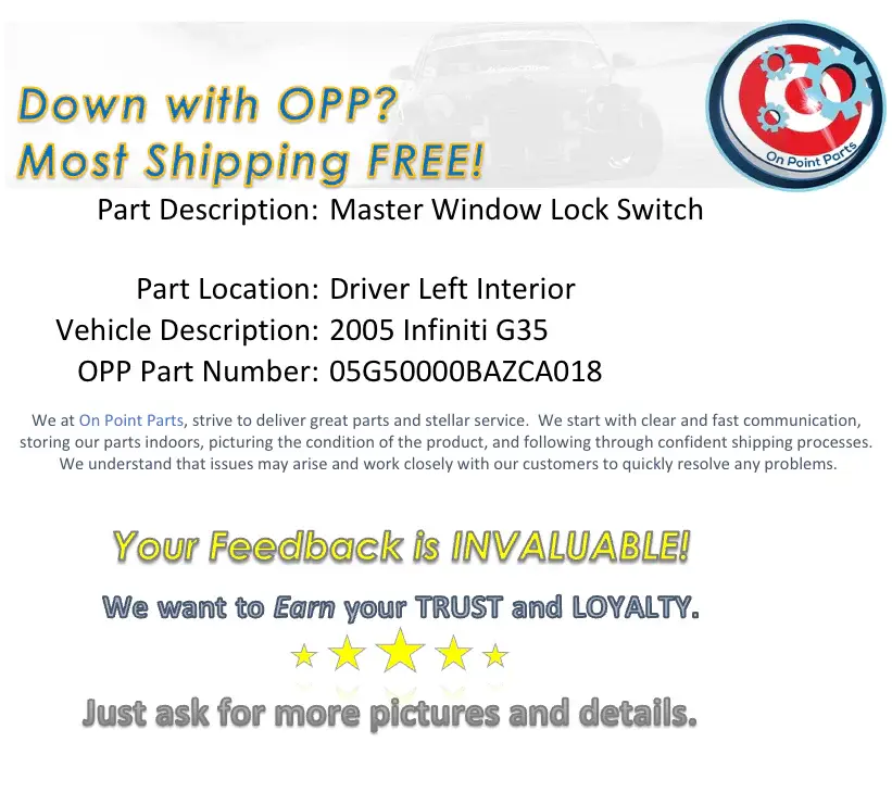 Infiniti G35 Driver Left Door Master Window Lock Switch OEM ✔ Satisfaction guaranteed or your money back ✔ Best Price Guarantee 🛒 Limited Stock – Order Now