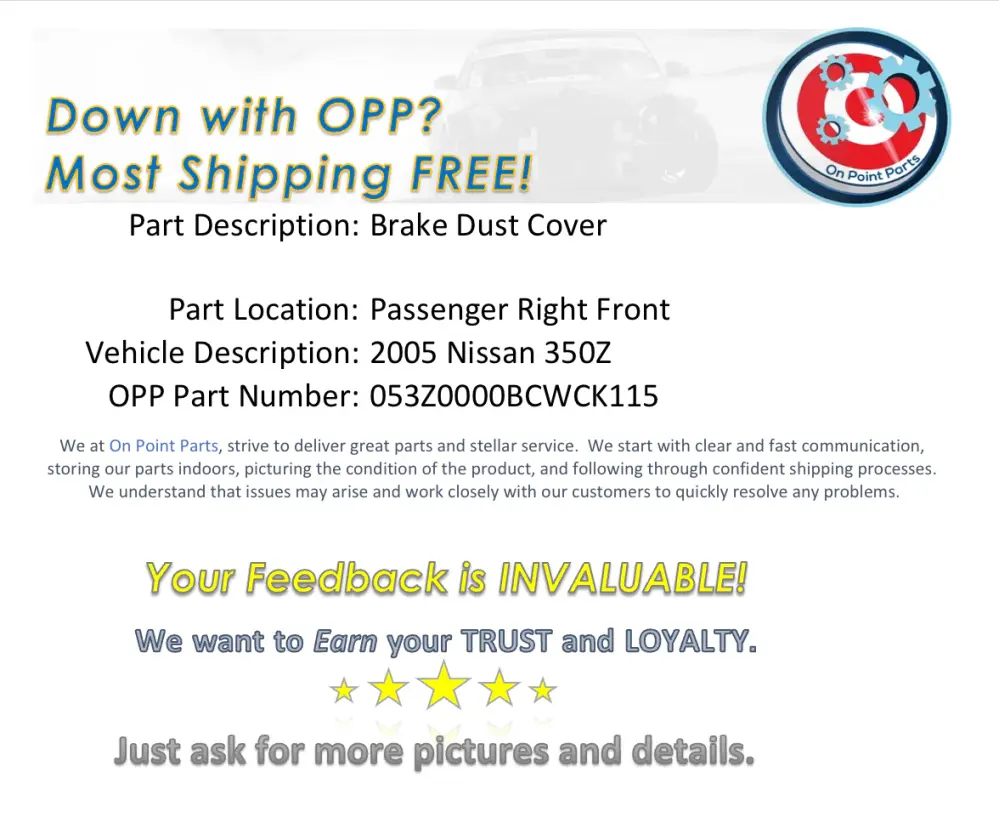 Nissan 350Z Passenger Right Front Brake Dust Cover OEM 0BCWCK ✓ Free returns within 30 days ✓ Free shipping on all orders ► 100% Satisfaction Guarantee