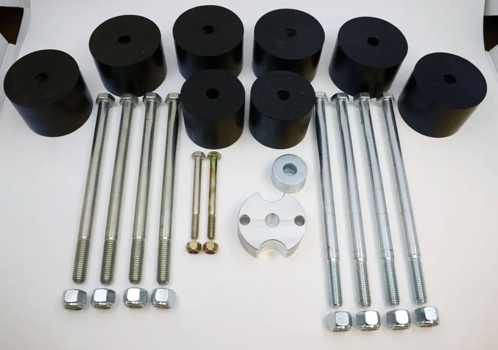 - 1.5″ and 2.0″ kits include new 6061 aluminum steering spacers (Not required with 1.0″ kit)