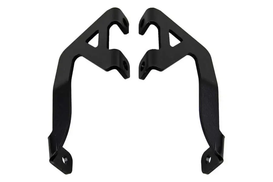Grimm Offroadβs Hood Hinge Lightweight Brackets allow mounting of auxiliary lights to the lower A-pillar/cowl location of your vehicle. The low-profile light brackets mount using the stock hood hinge bolt locations and require no modifications for installation. Compatible with lights up to 3 inch in diameter, these high strength brackets allow fitment of most aftermarket pod-style lights.