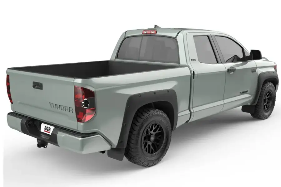 Experience the epitome of rugged aesthetics and superior protection with EGR’s Bolt-On Blackout Fender Flares for the 14-21 Toyota Tundra. These fender flares boast a subtle matte finish and are accentuated by sleek black hardware, adding a touch of sophistication to the bolted style and are the perfect accessories for your Tundra truck.