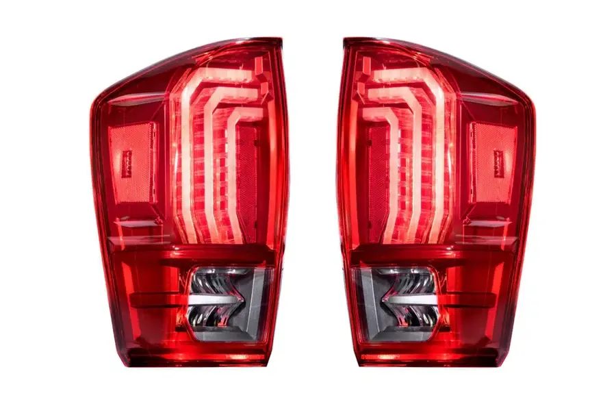 The Morimoto Ruby XB LED Tail Lights for the 16-23 Toyota Tacoma, the ultimate upgrade for truck enthusiasts. These tail lights are designed to enhance both style and functionality. They are compatible with all 2016 and newer Tacoma models and boast easy plug-and-play installation with factory wiring harnesses, using existing mounting points. Inspired by OEM tail light design, the Morimoto XB lights feature illuminated light blades with integrated TIR optics, serving as brake lights, parking lights, and turn signals.