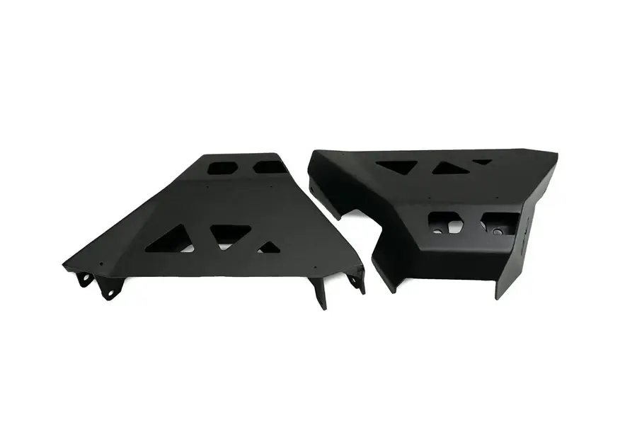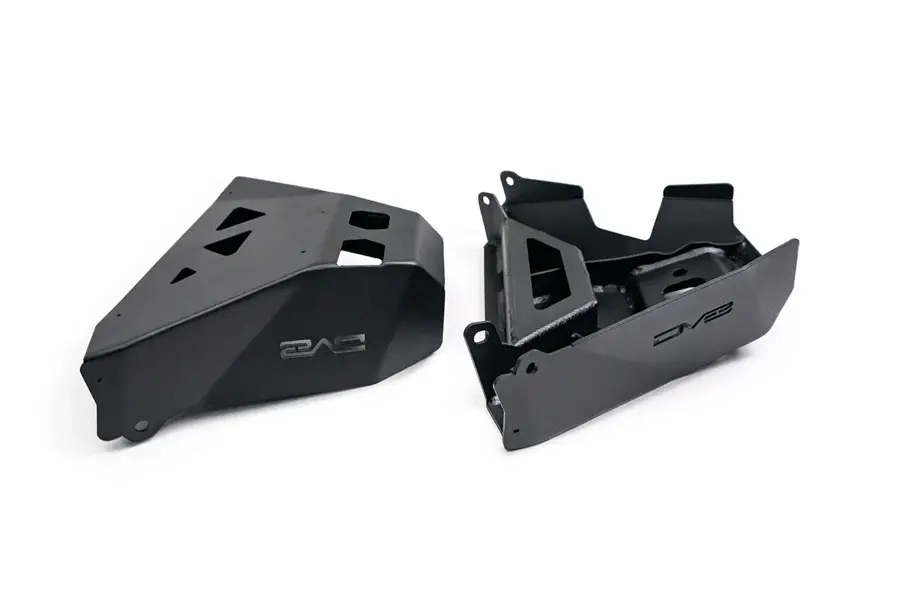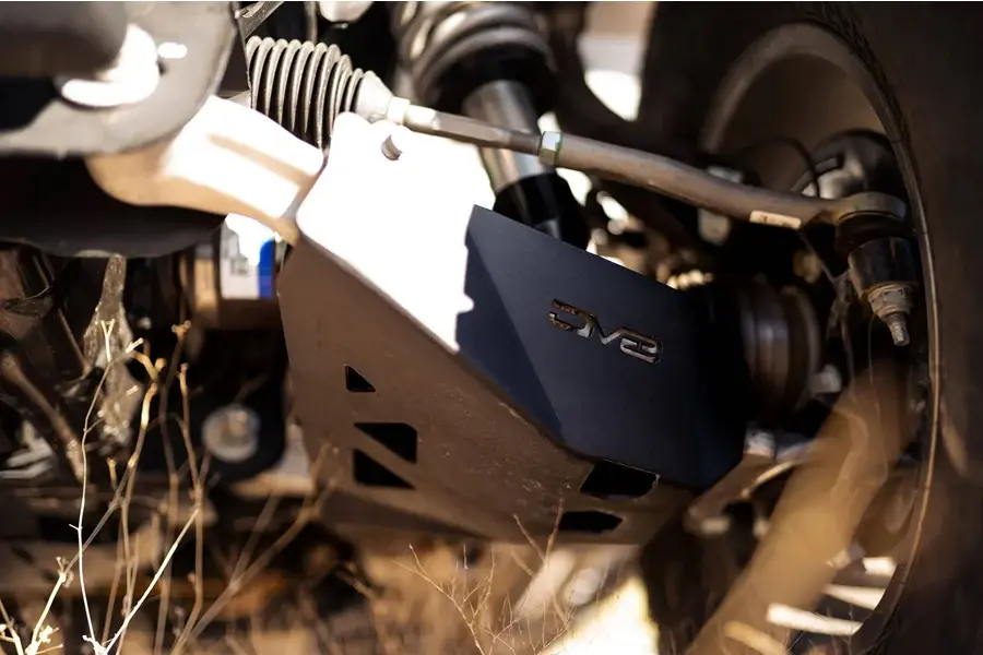 DV8 Offroadβs A-Arm Skid Plate for the Bronco was designed to protect the aluminum front, lower control arms and shock bolt from rocks and other obstacles on the trail. Made from 3.5mm steel and finished in a micro-texture ebony powder coat, it also shields the vulnerable shock bolts from damage. Couple this with our Front Skid Plate and fully protect the front undercarriage of your Bronco while running those rocky trails you love.