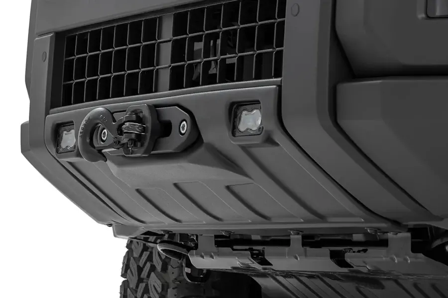 Stealthy Winch Integration: Designed for Rough Country’s PRO9500S and PRO12000S winches, this hidden winch mount keeps recovery power tucked behind the front fascia for a streamlined, low-profile appearance.