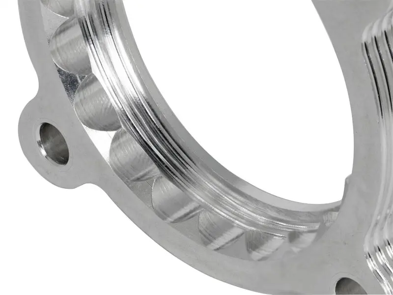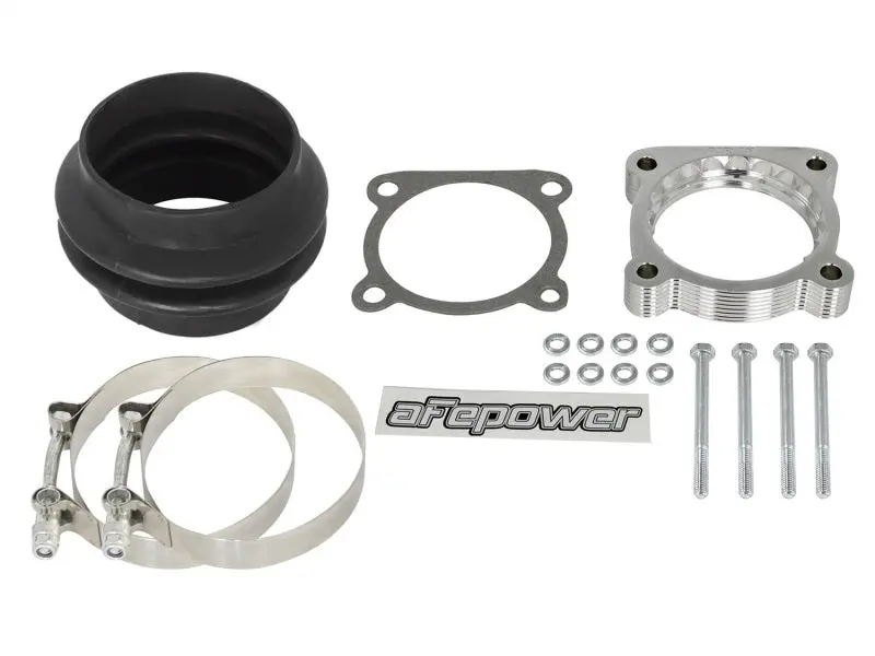 The Serrated/Helix design creates air turbulence in the intake manifold to increase air pressure in the combustion chamber resulting in increased horsepower, torque and improved throttle response. The Serrated/Helix combination design also reduces intake whistle that occurs with other helix only designs. (US PAT 07055513). Made from 6061-T6 Billet Aluminum aFe Silver Bullet Throttle Body Spacers are precision machined for lightweight, high strength and perfect fit. These spacers come with gaskets and use all factory mounting locations for a hassle-free installation.