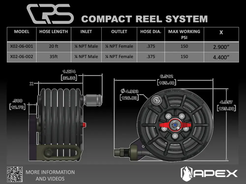 Designed and crafted to be the highest quality compact hose reel on the market. The Compact Reel System is a game changer when it comes to mobile air inflation. Pocket-sized and universal in design–It works in a wide variety of applications! Mounting brackets and chucks are sold separately.