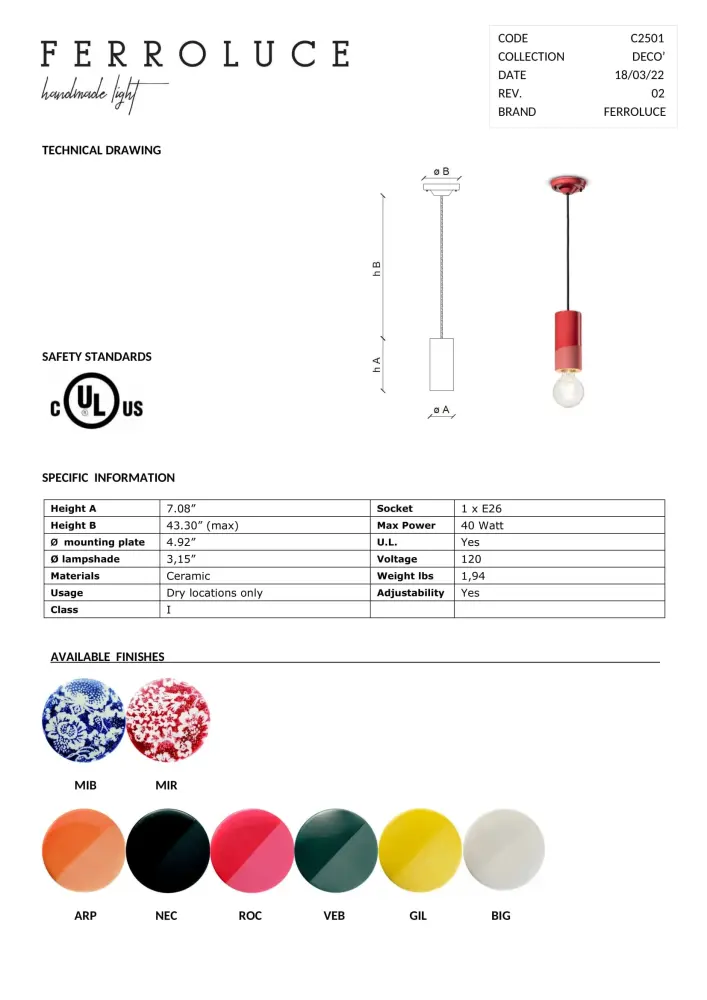 The Italian Deco’ collection recalls the iconic, minimal shapes that define an era of simplistic inspiration. These shapes are a fresh series of designs, offered in patterns and colors to give personality and presence. Whether in the home, the restaurant, or the work environment, the Ferroluce Deco’ collection will shine.