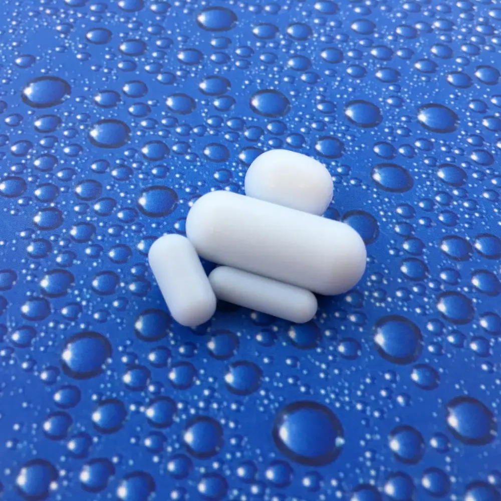 Round, cylindrical shape with smooth profile. Fluid, steady action. Features excellent centering and even running characteristics. Ideal for highly effective mixing over a wide variety of conditions, including general purpose stirring. PTFE stirring bars offer ultimate performance, long working life, and extreme versatility. PTFE coating features chemical resistance, thermal stability, low friction (with little or no adhesion), and insolubility (with high purity). Inert and leak-free. Isostatic encapsulation to eliminate cracks and porosity. Reflective finish to reduce pickup and cross contamination. Can be sterlized via all typical chemical or insulating (i.e., autoclave, etc.) means (except gamma radiation). FDA and USP Class VI authorized PTFE (polytetrafluoroethylene). Pure PTFE coating. AlNiCo V magnet core. Various dimensions and weights. See dropdown options to select size.
