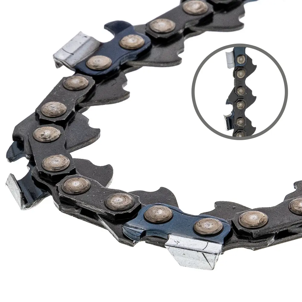 - Chainsaw Chain Specs – 14 Inch; Micro Chisel; Chain Material 68CrNiMo33 Reinforced; Rivet Material GCr15 Steel