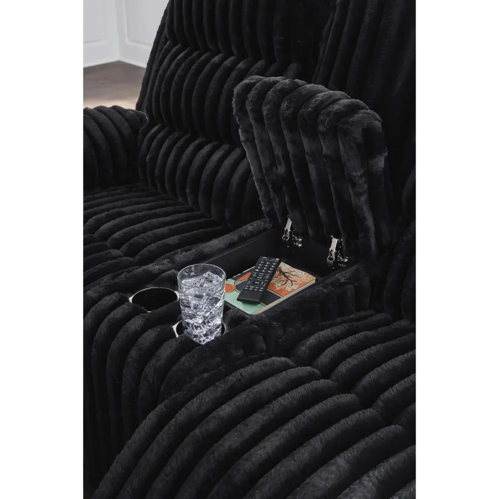 We don’t know about you, but one look at this power reclining loveseat makes us want to settle in and never leave. There’s so much to love—we’ll start with its cozy corduroy and fashion-forward contemporary design. Did we mention the generous seat and tall back, specially handmade to provide extra support and comfort for broader and taller individuals? Let’s not forget its one-touch reclining and pillowy cushions, offering easy and instant relaxation that feels right at home. Plus the hidden storage and cup holders in the loveseat’s console are indulgently convenient.