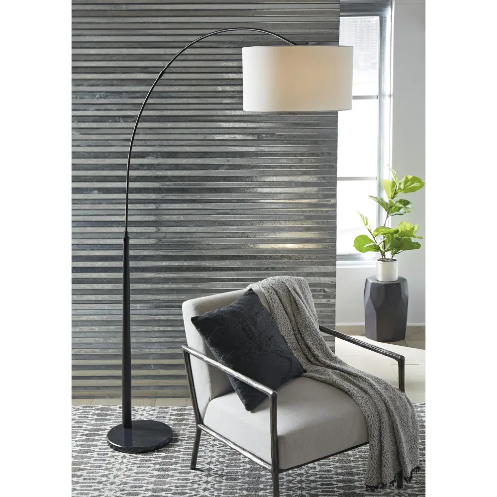 Illuminate your space while adding elegant state-of-the-art styling for your home with this floor lamp. A silhouette inspired by modern simplicity, the generously arched column suspends the shade, adding a smooth glow to your bedroom, office or living area.