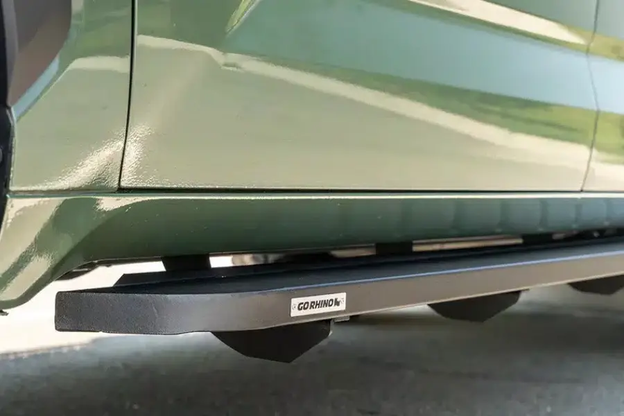 The Go Rhino RB10 Running Boards feature a heavy-duty 16-gauge steel construction for unmatched strength, withstanding hun