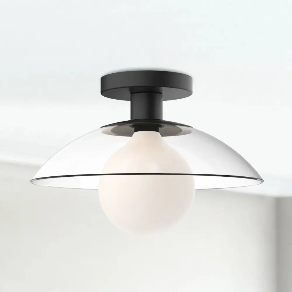 The Francesca Semi-flushmount beautifully merges organic inspiration with mid-century modern aesthetics, creating a captivating lighting statement. This distinctive fixture draws inspiration from delicate flower petals while incorporating classic Sputnik design elements, resulting in a unique blend of unrefined beauty and retro sophistication. The modern glass “petals” radiate from the central hub, creating dynamic light patterns and visual interest throughout the space. Available in Aged Gold with Clear Glass or Clear Glass with Matte Black finishes, the Francesca adapts to various design preferences. Two size options accommodate different spatial requirements: the intimate 11-7/8 inch diameter by 5-1/2 inch height version, and the dramatic 19-3/4 inch diameter by 10-3/8 inch height statement piece. The energy-efficient warm pearl LED technology secures optimal performance and longevity, while the clear glass maximizes light output. This versatile fixture enhances living rooms, bedro