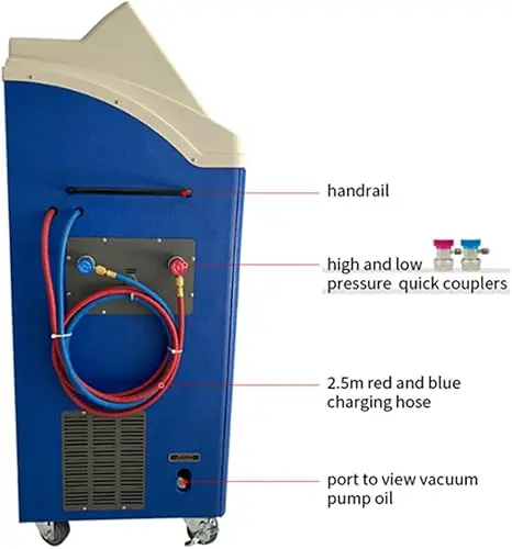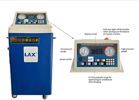 - This machine is specifically designed and certified for use with refrigerant, which is a standard type used in many automotive and residential air conditioning systems. The machine has built-in high pressure protectio