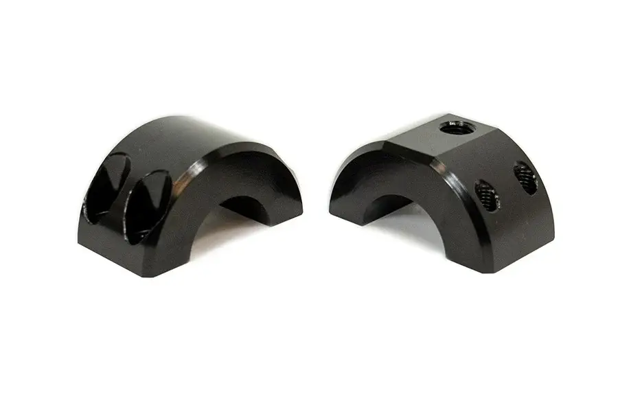Grimm Offroad’s tie rod clamps are perfect for mounting factory or aftermarket steering stabilizers to your Jeep’s tie rod. Durable high-strength steel will give you confidence in any off-road situation and won’t wear down like aircraft-grade. Oversized M8 mounting screws provide increased clamping force with a more durable Torx socket that better defies cam-out over standard allen sockets. A bolt and washers are included to mount your steering stabilizer to the offset threaded hole providing enough clearance to accommodate stock or aftermarket steering stabilizers with large bodies. Recessed mounting hardware installs from the opposite side of the stabilizer bolt to aid in ease of install. Multiple tie rod clamp sizes allow fitment to most common tie rod diameters.