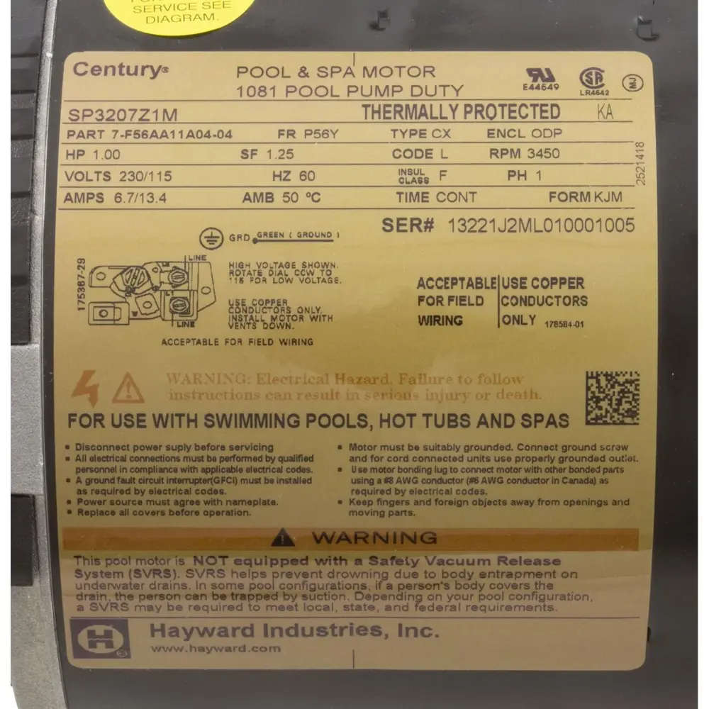 Hayward SPX3207X10Z1PE 1-Horsepower Standard Effective Max Rate Power End Replacement for Hayward Tristar SP3200X Pump