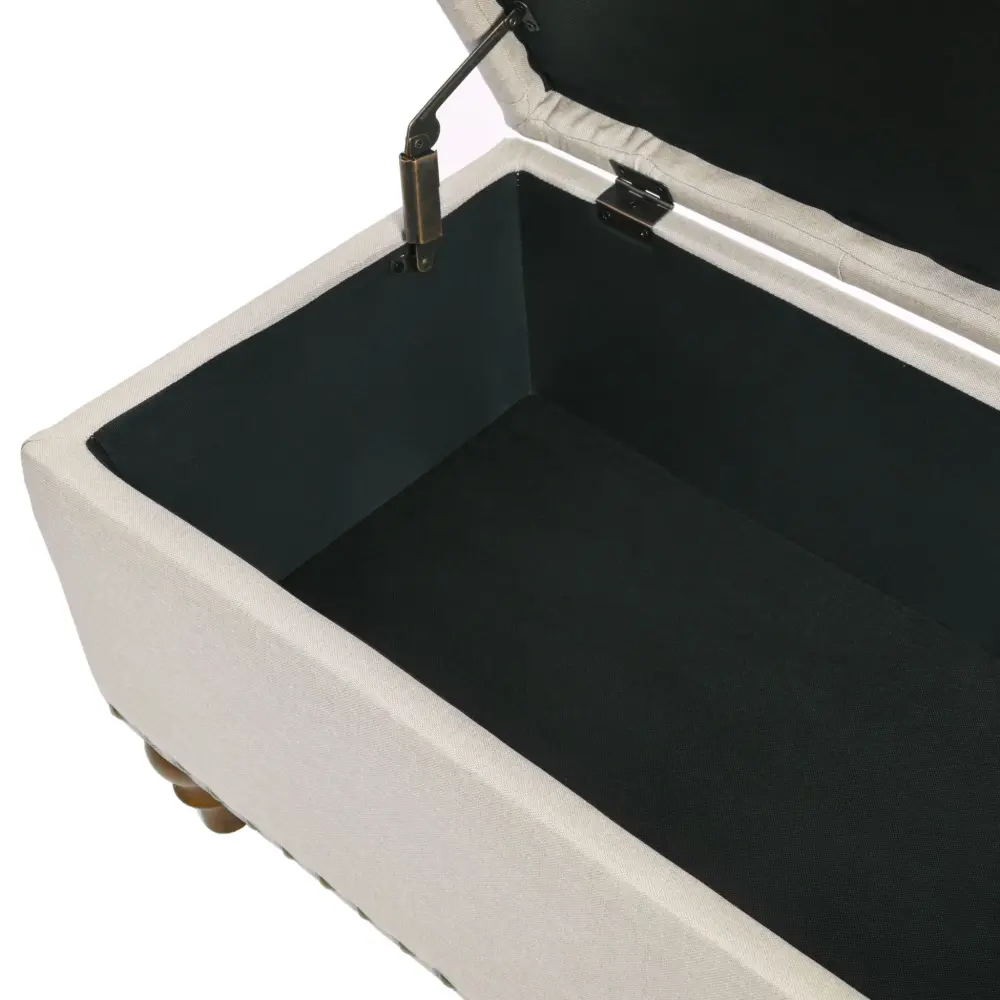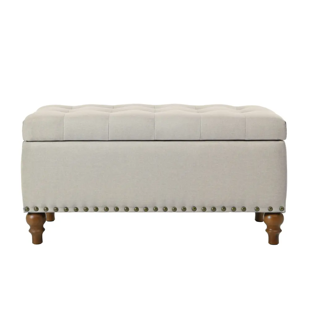 Elegant Ottoman Storage Bench With Recessed Hinge And Rivet Trim Linen-fabric – Beige