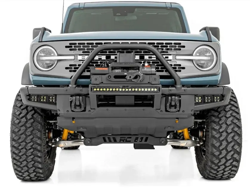 The bracket is designed to maintain functionality of the Bronco’s adaptive cruise control system, ensuring compatibility with factory safety equipment while upgrading recovery capability.