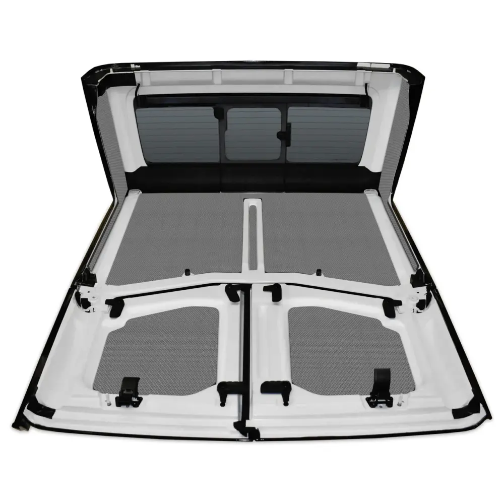 Riding in a Jeep Gladiator is great fun except for the truck’s propensity for interior noise that makes it difficult to engage in conversations or even enjoy vehicle audio systems. Now there is an easy solution. Boom Mat’s new Jeep Gladiator Sound Deadening Headliner provides a simple pre-shaped peel and stick kit that dresses up the interior of Jeep hard tops while minimizing annoying outside noise and vibrations while insulating from exterior weather conditions. Installed Boom Mat’s fresh Sound Deadening Headliner has been tested to reduce noise levels from 3 to 4 decibels. This is a significant transform in sound level that will improve overall interior acoustics so Jeep occupants can enjoy audio system and have conversations without excessive and irritating noise distractions.
