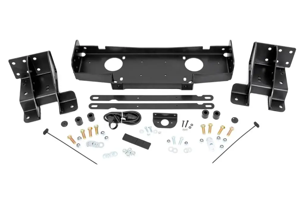 Give your Jeep a sleek recovery system that blends in seamlessly with the factory aesthetic with Rough Country’s WK2 Hidden Winch Mounting Kit! This convenient winch mounting kit allows you to upgrade your vehicle with any standard-sized winch, giving you the ability to make it out of any tough spots you may encounter while also adding a more interesting, aggressive look to the front end of your vehicle.Each Hidden Winch Mounting Kit includes a remote port relocation system that moves the terminal from beside the winch to just under the hood for easy operation without fumbling around underneath the vehicle.Each kit includes a handy template allowing you to create the fairlead route in no-time flat. Rough Country’s Hidden Winch Mounting Kit features a bolt-on installation process making it easy to upgrade your vehicle! This kit can accommodate mostШsynthetic winches andШhawse fairleads. Upgrade your Jeep and be ready for recovery in an instant!