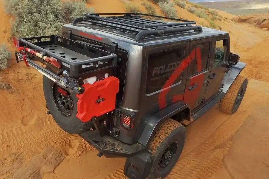 Designed to increase storage space for extended overland adventures, the TeraFlex Alta Cargo Rack sits readily above the spare tire to keep additional supplies out of harm’s way. The Alta Cargo Rack mounts securely to the TeraFlex Alpha HD Hinged Spare Tire Carrier (not included) through a steel support structure which includes mounting points for added accessories.