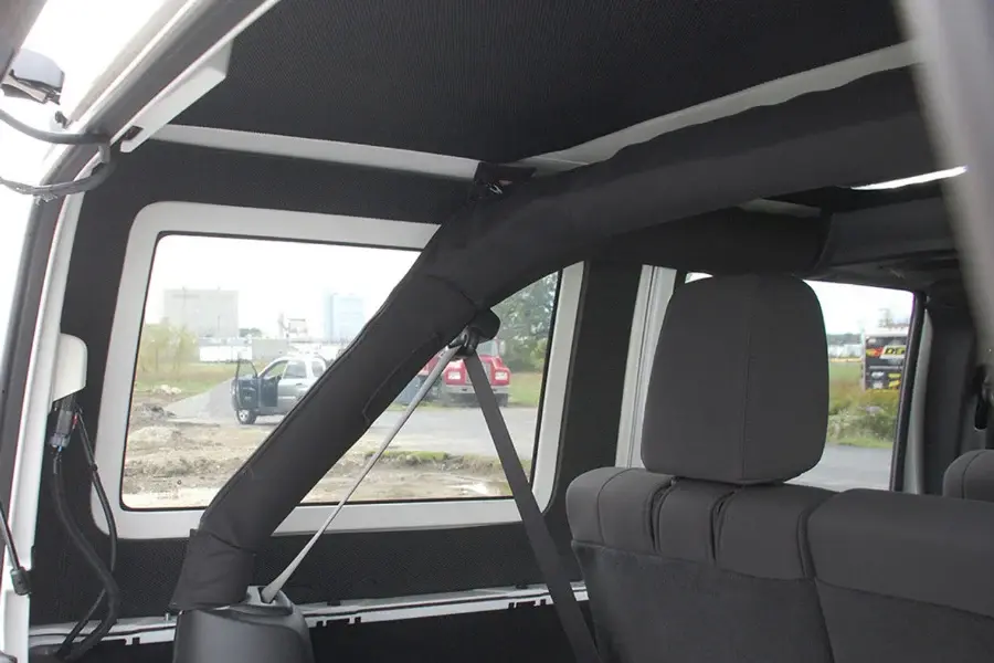BOOM Mat’s new Jeep Wrangler Sound Deadening HeadLiner provides a simple pre-shaped peel and stick kit that dresses up the interior of Jeep hard tops while minimizing annoying outside noise and vibrations while insulating from exterior weather conditions.