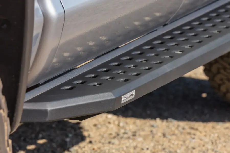 RB20 Running Boards offer off road styling while also helping to protect vehicle finish and providing a expansive full-length step platform for easy entry to vehicle. Bolt-on Drop Steps enhance access to vehicle, Protective Bedliner Coating.