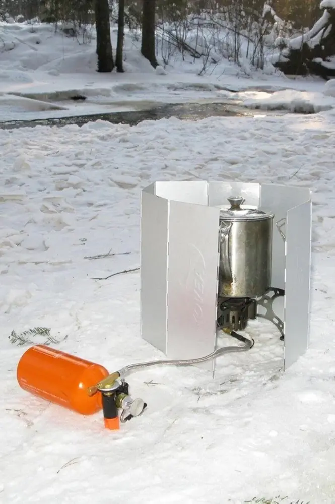 Kovea Windshield blocks the wind to preserve your stoves burning and cooking
