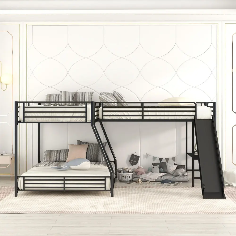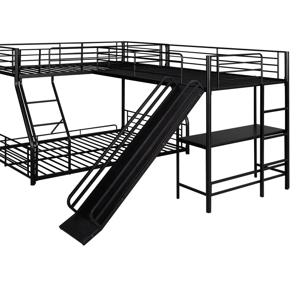 L-Shaped Twin Over Complete Bunk Bed With Twin Loft, Built In Desk And Slide – Black