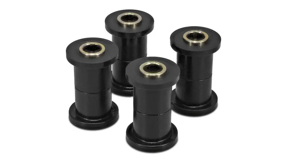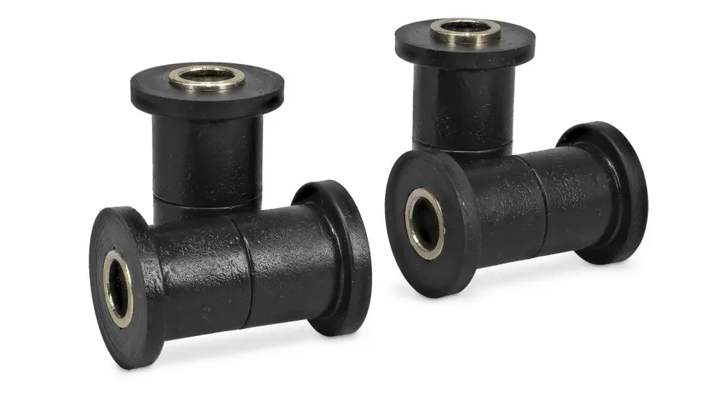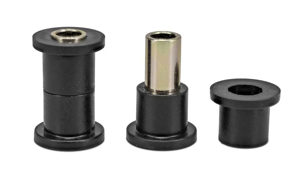 Set of four replacement rear leaf spring bushings for 1966-77 Ford Bronco. Our early Bronco rear leaf spring bushings are polyurethane bushings with a replaceable sleeve. Our poly rear leaf spring bushings run quieter and last longer than the rubber rear leaf spring bushings that came in the traditional Ford Bronco.