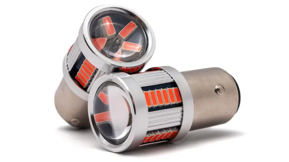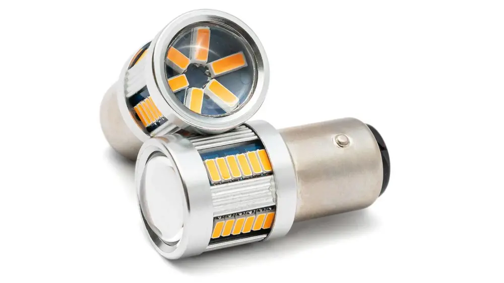 New Exterior LED Bulb Kit for 1966 Classic Ford Broncos. This kit includes new LED bulbs for your front turn signals and rear tail lights. Also comes with two load equalizers to correct any potential flasher issues caused by the fact that the LED bulbs will draw quite a bit less electricity than the factory bulbs. These LED bulbs provide a very bright, crisp light making your indicators easy to see by other drivers. Upgraded looking and safer than factory bulbs.