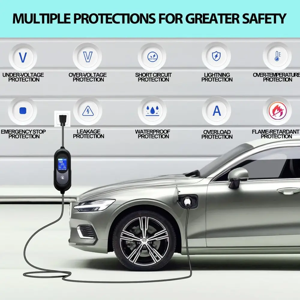 - Dual-Level Smart Charging: Level 1 & Level 2 EV Charger in One Experience the ultimate flexibility with our high-end EV charger that functions as both a Level 1 EV charger (120V, 12A) and a high-speed Level 2 EV charger (240V, 16A). Whether you need overnight charging or a quick power boost, this versatile EV car charger level 2 delivers optimal performance for all SAE J1772 electric vehicles.