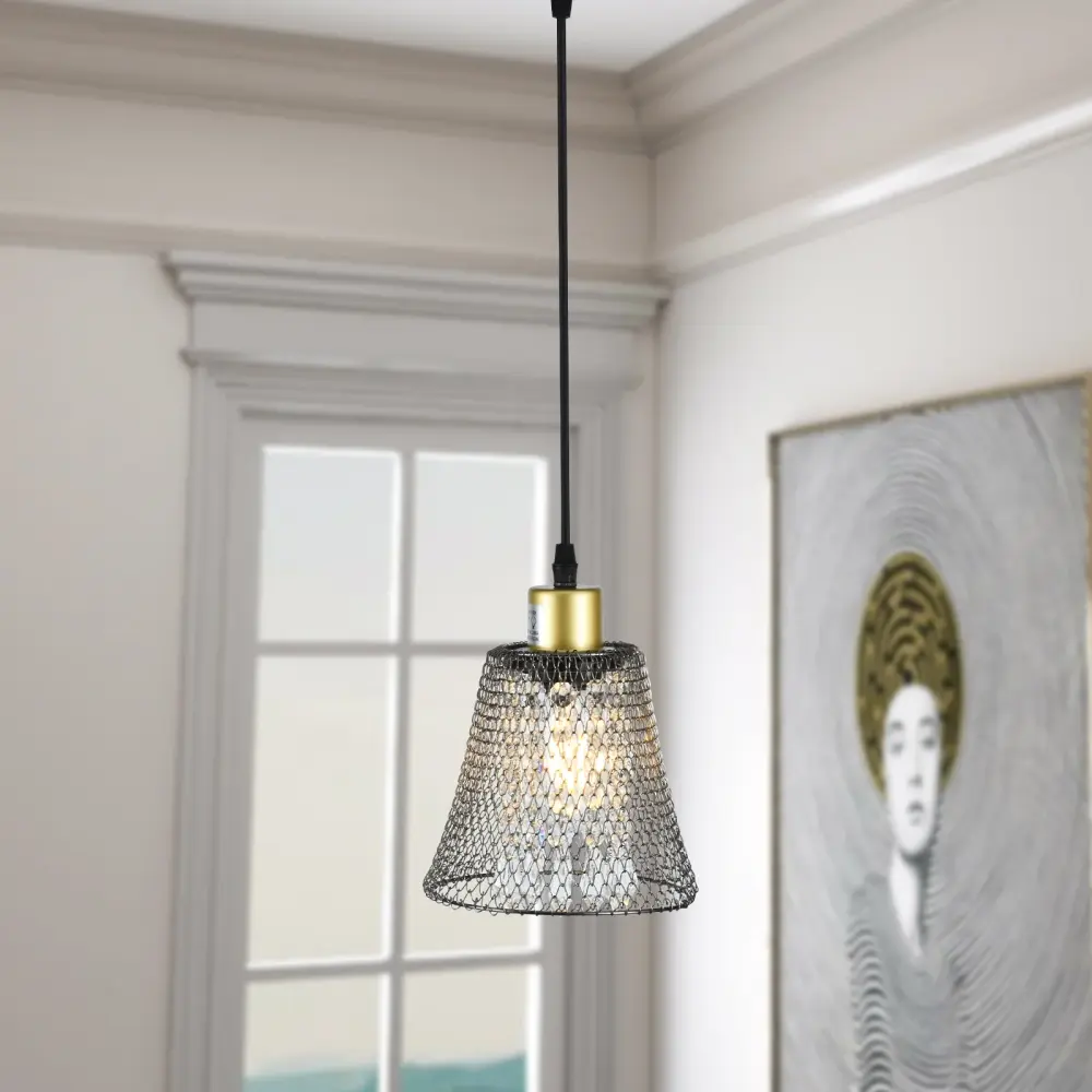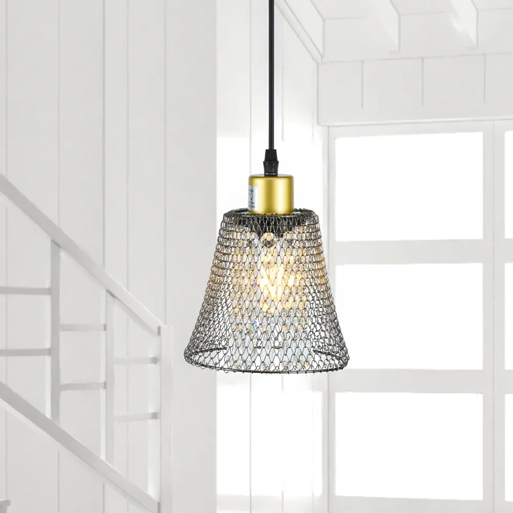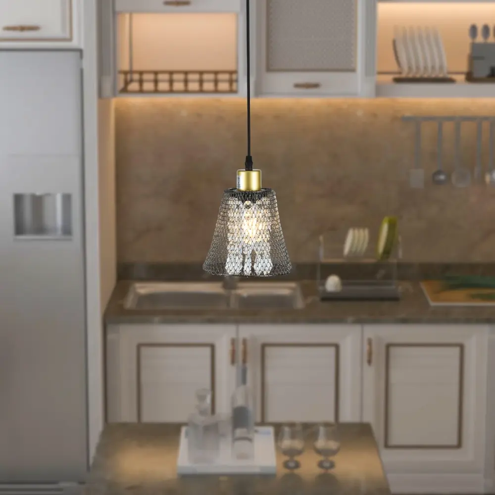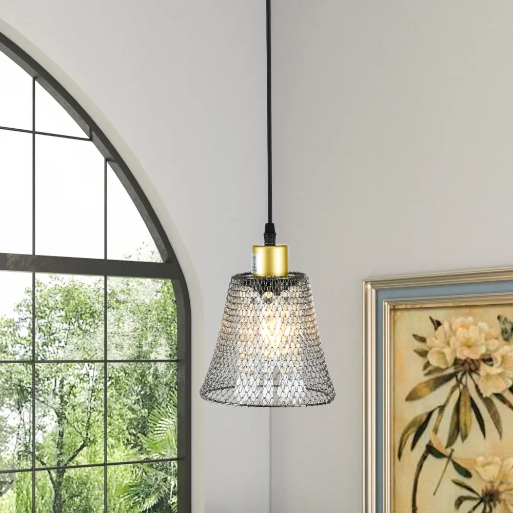 Introducing our captivating pendant light with a distinctive twist! Featuring a cone-shaped shade crafted from iron netting, this fixture effortlessly blends rustic charm with industrial flair, making it an ideal choice for modern interiors. The open-bottom design ensures optimal light distribution, bathing your space in a warm, welcoming glow.