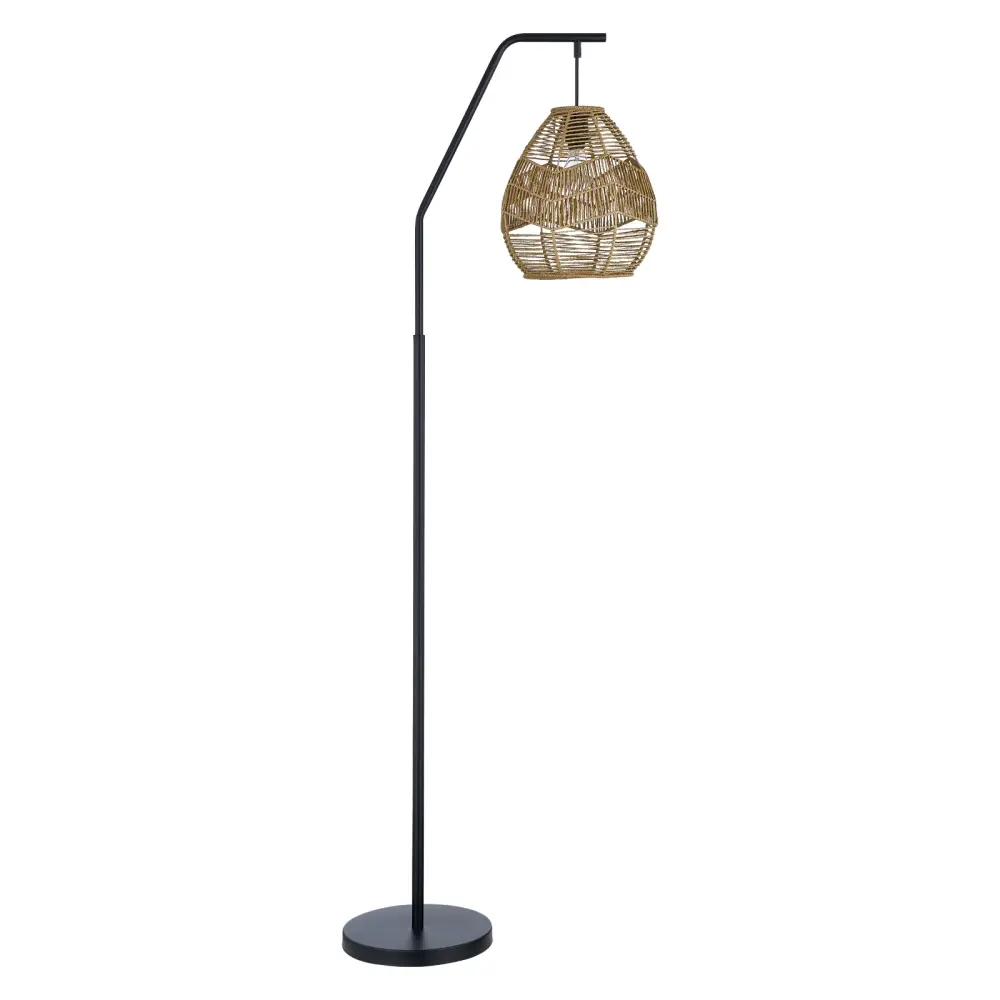 This sleek floor lamp is an ideal choice for enhancing any coastal-inspired living room or bedroom reading nook. Its woven rattan shade introduces a natural, rustic touch while providing ambient airy from a single 60W bulb (sold separately). The lamp features a slim, black-finished wrought iron body set on a rounded base, with an arched arm that highlights the dome shade. For intuitive operation, a convenient foot switch is located on the base, allowing you to effortlessly control the light.