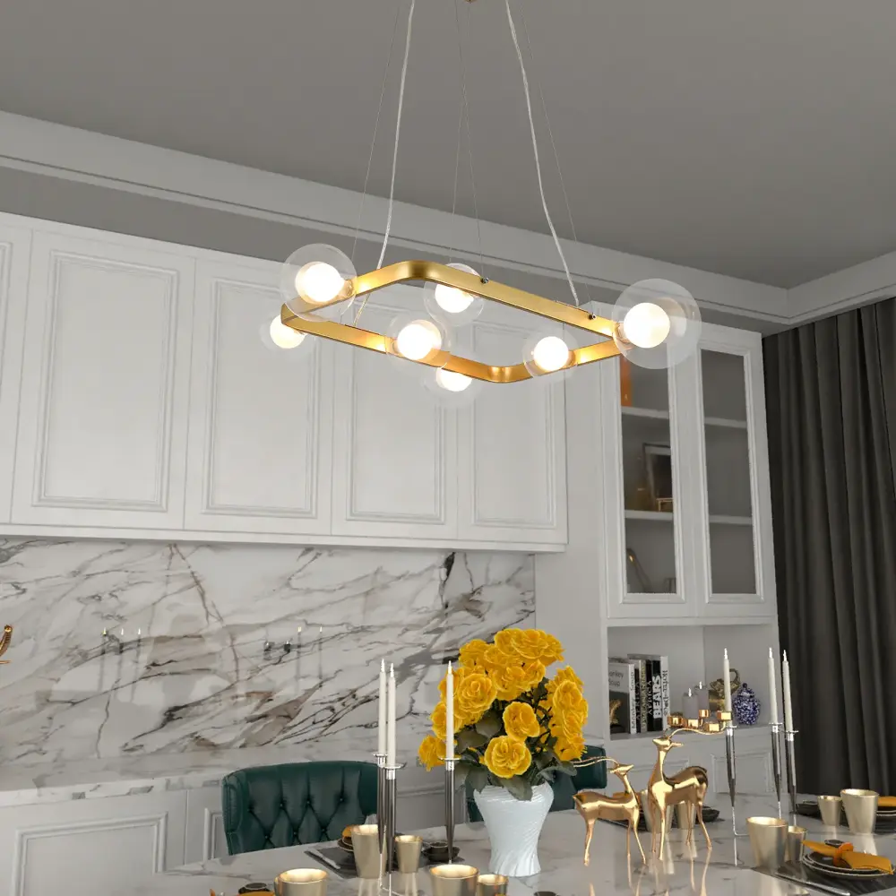 The product is a combination of geometric design and modernity. The body of the lamp is made of metal with a glass shade, and the simple yet elegant design adds dimension to your decor. The soft, thermal light penetrates the shade, making you and your family look forward to coming home every day and adding an atmosphere to the gathering moments.