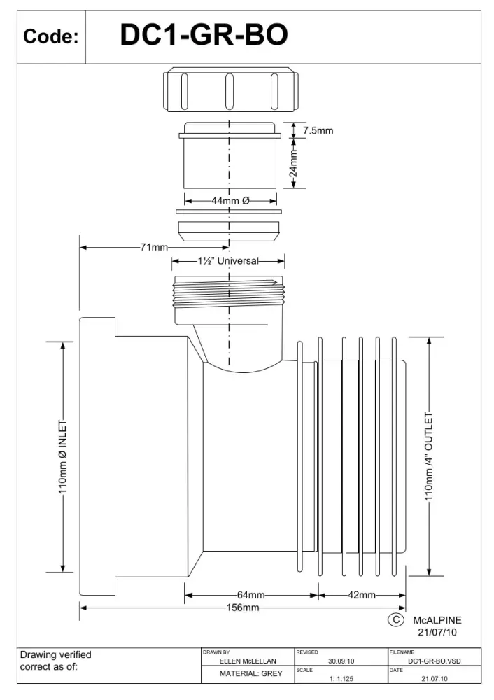 Overall, the McAlpine DC1-GR-BO is a reliable and versatile drain connector that provides a secure and leak-free connection between pipes.