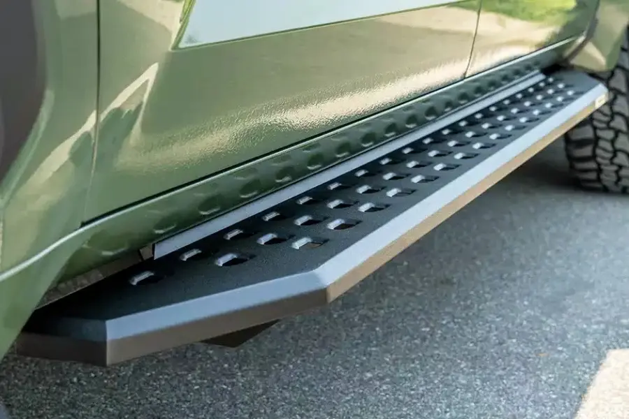 Durability isn’t the only appeal of the Go Rhino RB20; they also offer exceptional accessibility with their extra-wide 7.5-inch profile and bullet-stamped perforations, allowing snow, mud, and moisture to drain off the step surface. Both coatings