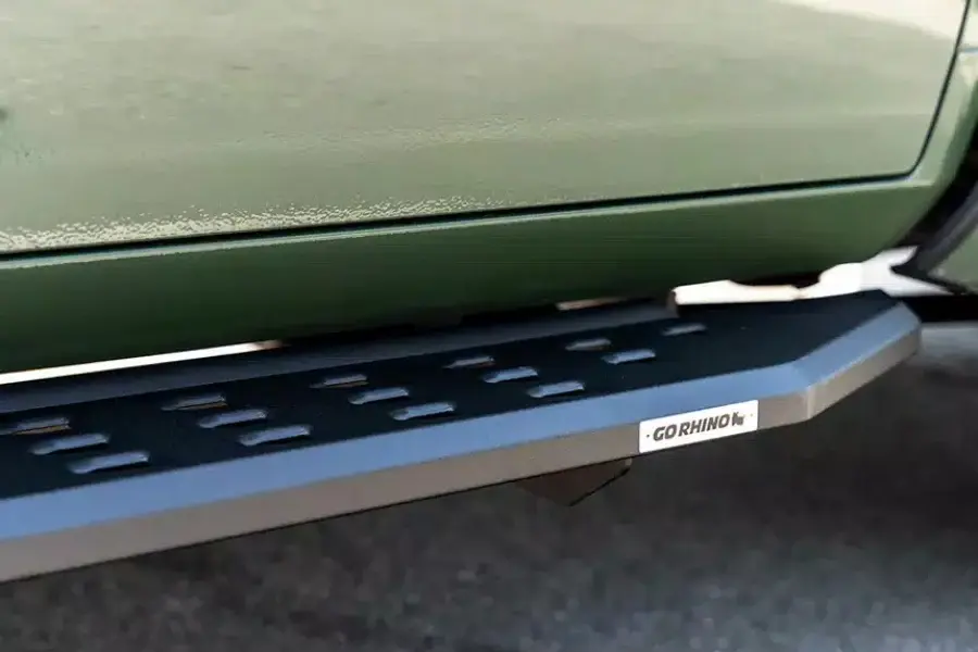 Go Rhino RB20 Running Boards feature an all-steel construction with a 16-gauge galvanized hardened body for superior strength and corrosion resistance. Whether grazing rocks and obstacles on the trail or taking road debris on the highway, Go Rhino RB20 Running Boards will protect your ride’s rocker panels. Go Rhino treats each pair of RB20 Running Boards with your choice of textured black powder coat or bedliner, preventing unsightly rust and corrosion.