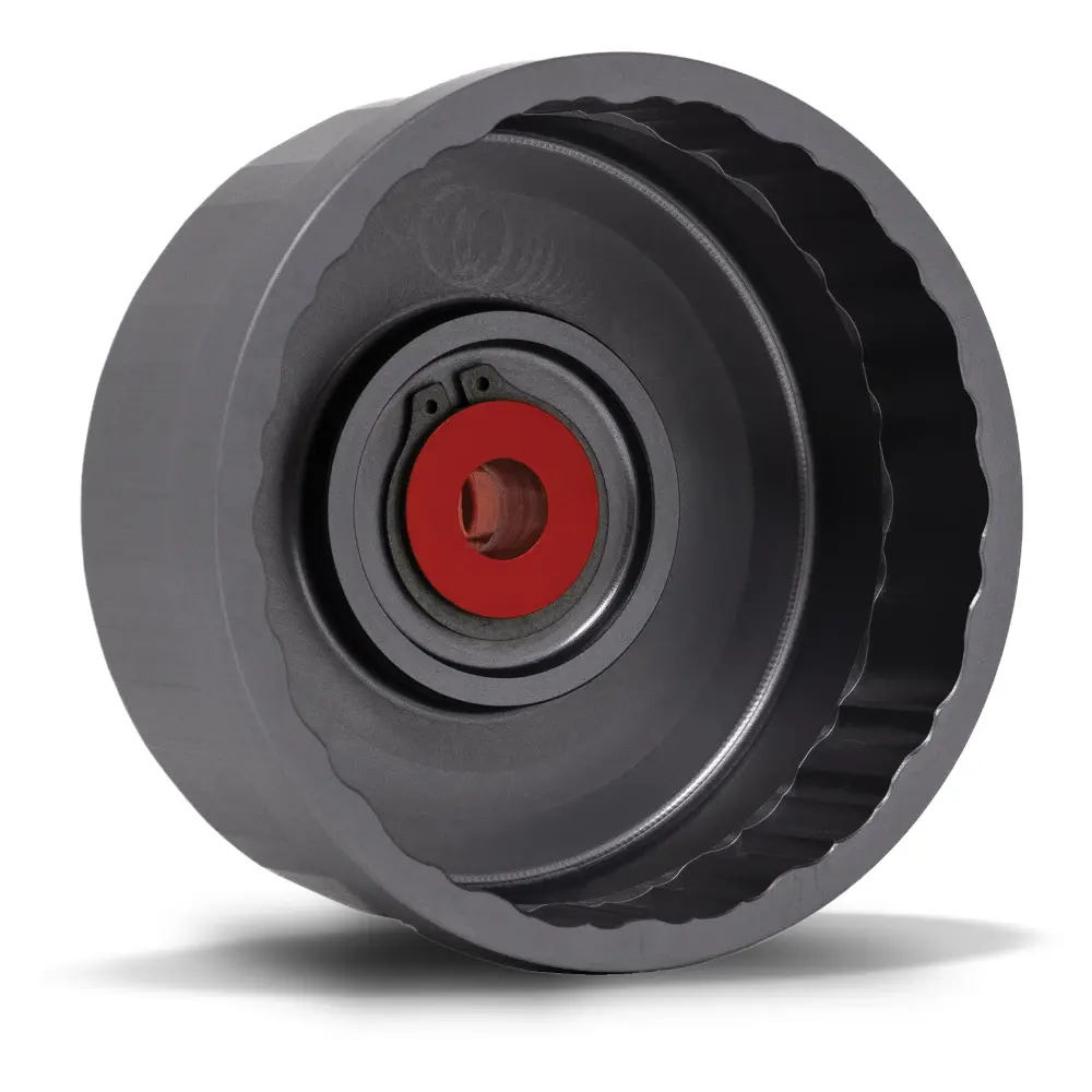 - This 2 piece patent pending design incorporates a main body machined from 6061 aircraft-grade and anodized grey. The drive portion is machined from 7075 aircraft grade aluminum for added durability and anodized red.