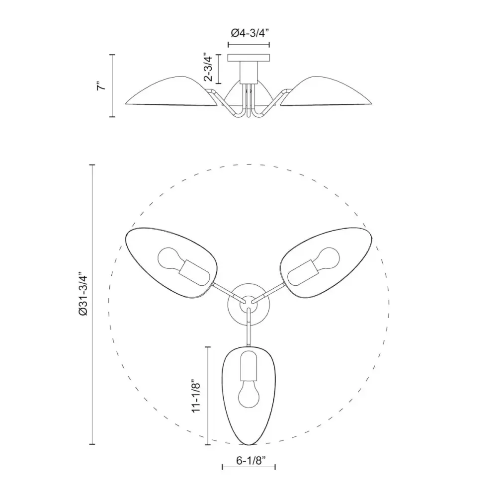 The Oscar Semi-flushmount embodies Hollywood glamour through its distinctive teardrop-shaped shades and gracefully curved arms. This award-worthy collection showcases modern sculptural design with mixed-metal finishes that create sophisticated visual depth and contemporary appeal. The unique teardrop silhouettes provide both ambient and directional lighting, ensuring optimal illumination while serving as an artistic focal point. Available in two stunning finish combinations—Aged Gold with Matte Black for dramatic contrast, or Aged Gold with White for cultivated elegance—the Oscar adapts to diverse design aesthetics. With its impressive 31-3/4″ diameter and 7″ height, this commanding fixture makes a bold statement in larger spaces such as dining rooms, living areas, or entryways. The integrated LED technology delivers reliable warm ivory airy with superior energy efficiency and minimal maintenance requirements. The Oscar perfectly balances classic Hollywood elegance with modern functio