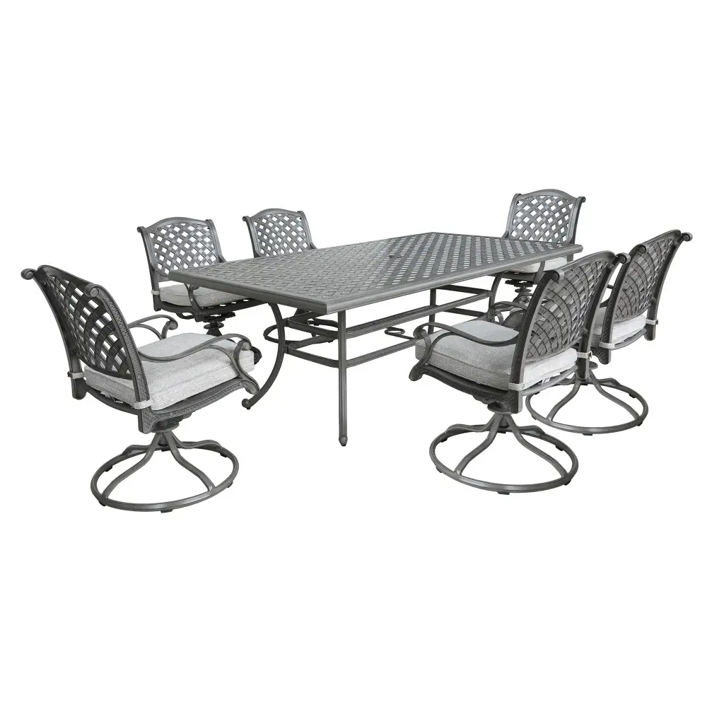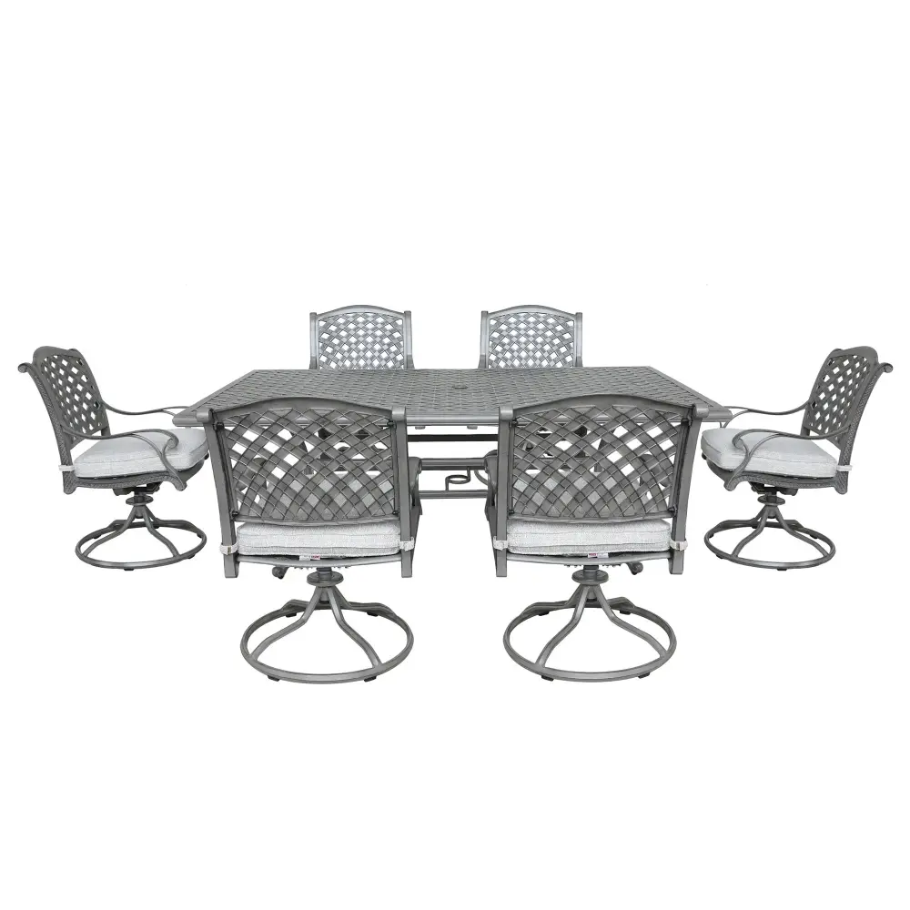 - Spacious 7-Piece Set: Includes swivel chairs and a rectangular table, providing ample seating for family and friends to enjoy outdoor meals and conversations.