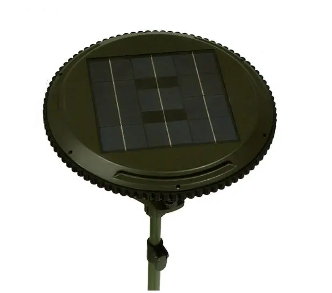 - Lithium Ion li-ion battery that sources its power from a 9.75” Solar panel or can be charged through a USB. In addition, you can place 3 D standard or rechargeable batteries to extended use.