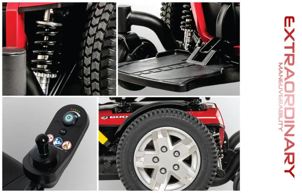 This high-performance power chair is built for precision control, smooth operation, and everyday reliability. It features a depth-adjustable, semi-recline, fold-flat high-back seat with a height-adjustable headrest for proper support during extended use.