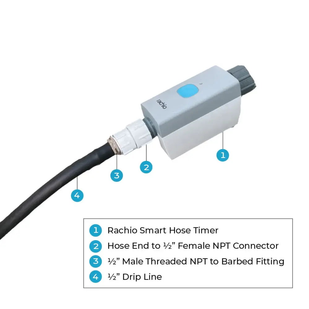 Easily create schedules and control outdoor faucets with the Automated Hose Timer and Rachio app. Kit comes with one valve and one WiFi Hub. Timer valves require a WiFi Hub and two AA batteries (not included).